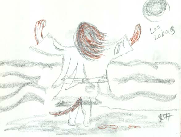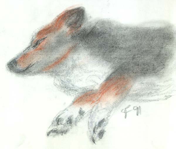Mystic's roses below are in watercolor and the other pictures in conte crayon and graphite. My dear wolfish sister has her own site that is absolutely wonderful and has some of her "word children". Used by permission only. |